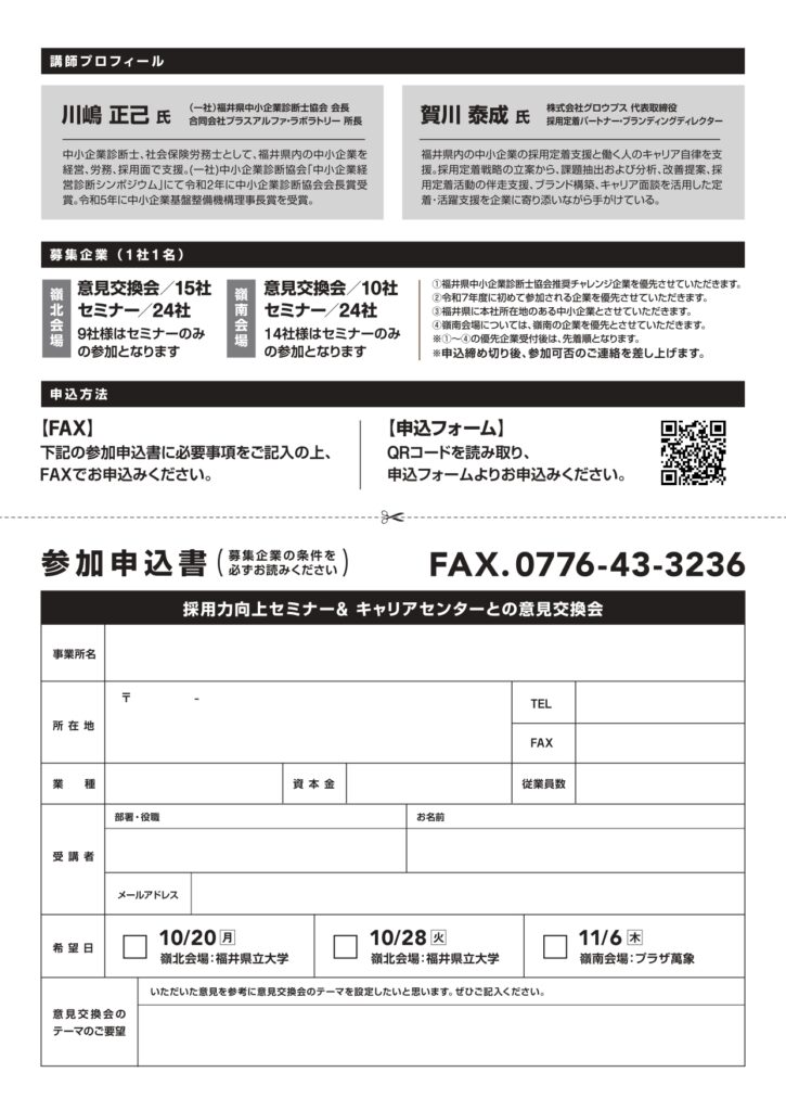 未来協働プラットフォームふくいが主催する人材採用に関するセミナーが開催されます。