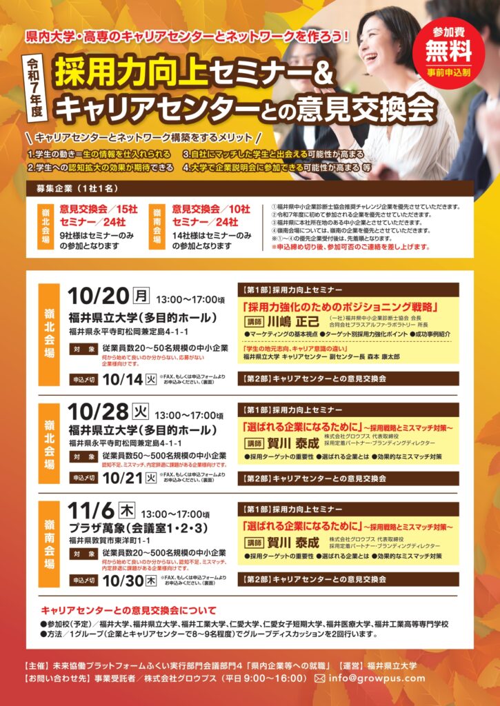 県内大学や高専のキャリアセンターとネットワークを作る絶好の機会ですので、ぜひご参加ください。